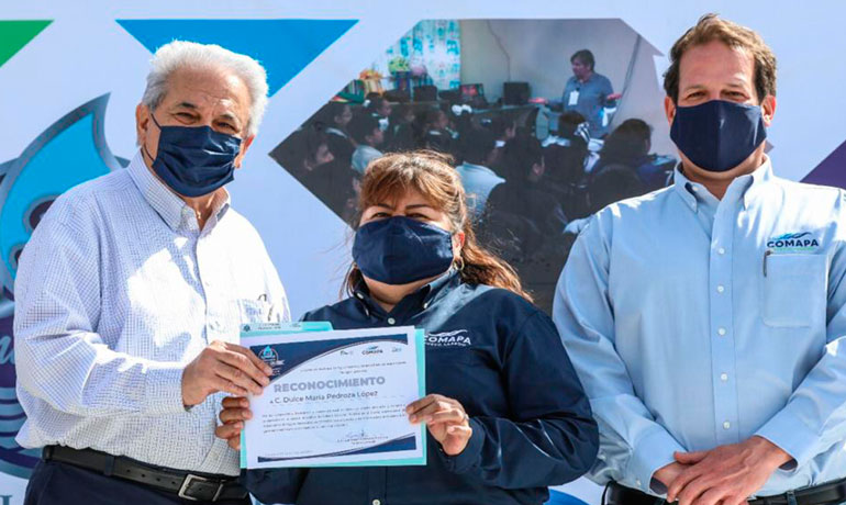 En la ceremonia, Arturo Sanmiguel entregó reconocimientos a los empleados con trayectoria de trabajo de 22 a 25 años en la PITAR y la COMAPA, los felicitó y convivió con todos.