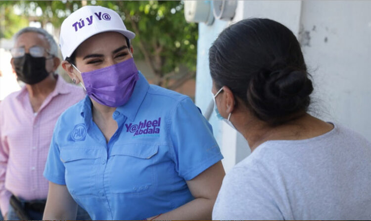 En su recorrido casa por casa en el fraccionamiento Los Encinos, Yahleel Abdala escuchó con atención a una residente del sector, quien es enfermera de la Unidad de Medicina Familiar (UMA) #76 del Instituto Mexicano del Seguro Social (IMSS).