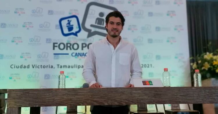 Ciudad Victoria Tamaulipas.- Mayo 12, 2021.- Una agenda legislativa orientada a recuperar el desarrollo económico de la región, el crecimiento de la economía en Victoria, así como la gestión y fiscalización de los recursos que pertenecen a todos los ciudadanos fueron parte de las propuestas que el candidato de la coalición MORENA-PVEM-PT a la Diputación Federal por el 05 Distrito, Gerardo Illoldi Reyes compartió durante su participación en el Foro Político Canaco 2021.