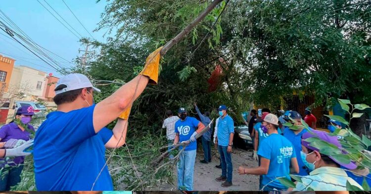 En Paseo Loma Real, los candidatos y sus equipos de campaña pusieron manos a la obra y trozaron los troncos de 3 árboles de gran tamaño para poder liberar la vialidad.