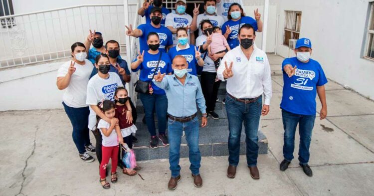 MIGUEL ALEMÁN, TAM.- Luego de concluida la sesión en el Congreso del Estado, el candidato del Partido Acción Nacional a Diputado local por el Distrito III, Félix «Moyo» García, se trasladó a la Frontera Ribereña en donde continuó su campaña con una serie de actividades.