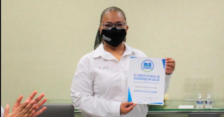 La Facultad de Enfermería Victoria (FEV) de la Universidad Autónoma de Tamaulipas (UAT) recibió el distintivo Escuela Segura, otorgado por el Comité Estatal de Seguridad en Salud a través de la Comisión Estatal para la Protección contra Riesgos Sanitarios (COEPRIS).