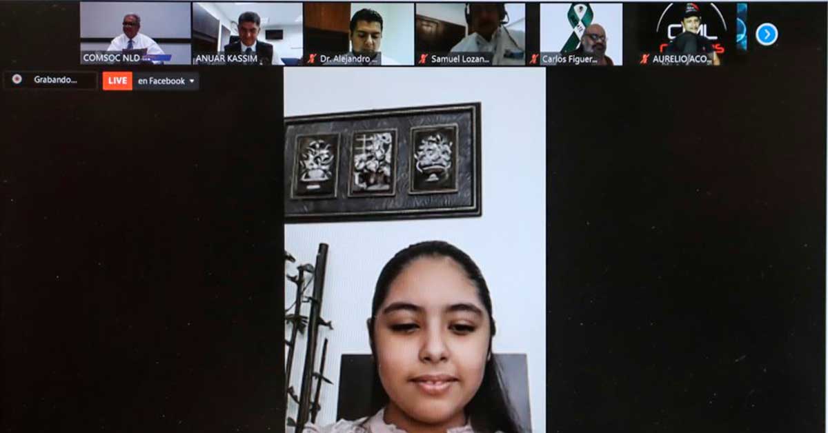 Arely Geraldine Juárez, ganadora del Concurso de Dibujo sobre Trabajo Infantil en Tamaulipas, fue invitada por el alcalde Arturo Sanmiguel Cantú, a la videoconferencia de ‘Lunes de Informe’, para reconocerle públicamente su destacada participación en el concurso estatal.