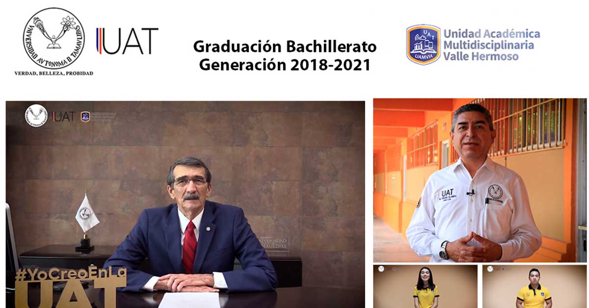 El Rector de la Universidad Autónoma de Tamaulipas (UAT), Ing. José Andrés Suárez Fernández, emitió un mensaje de felicitación por internet a los más de doscientos estudiantes de la generación 2018-2021 que egresaron del bachillerato universitario en la Unidad Académica Multidisciplinaria Valle Hermoso (UAMVH).