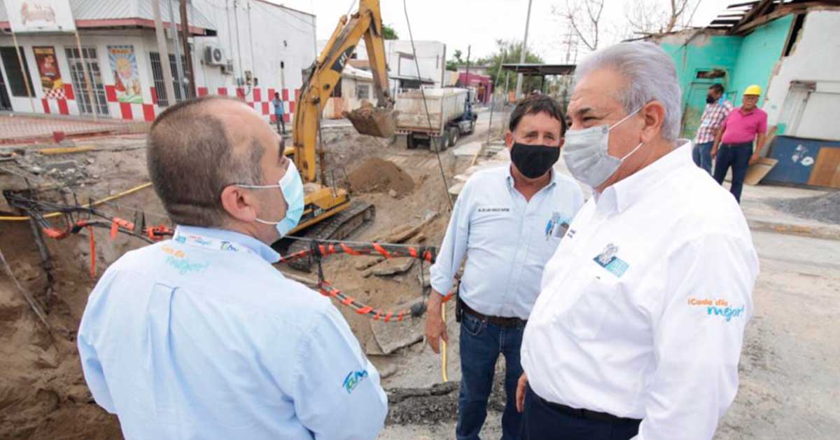Otro de los puntos que visitó Sanmiguel Cantú, fue el socavón que se formó en González y América, donde constató el avance de la obra.