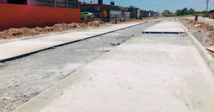 Con un 40 por ciento de avance, la repavimentación con concreto hidráulico que realiza el gobierno municipal en la calle Santa María, en Villas de San Miguel, se estima quede concluida a mediados de agosto.