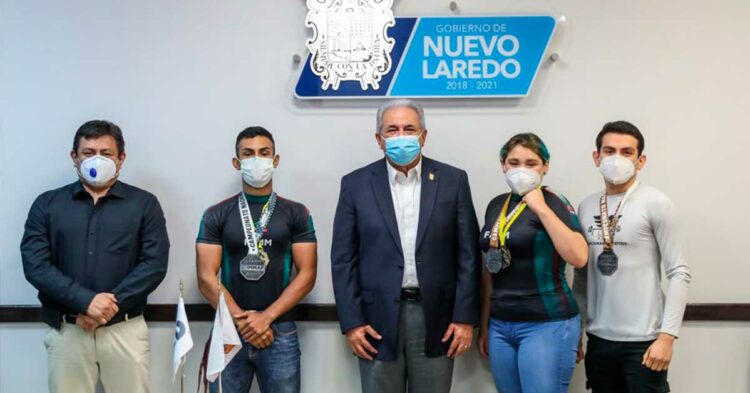 El presidente municipal Arturo Sanmiguel Cantú, felicitó a las y los jóvenes Melissa Alexandra Díaz Medina, Bruce Fernando Díaz Medina, y Miguel Ángel Gloria Ortigoza, por sus logros obtenidos en el campeonato estatal y nacional de artes marciales mixtas a nivel amateur.