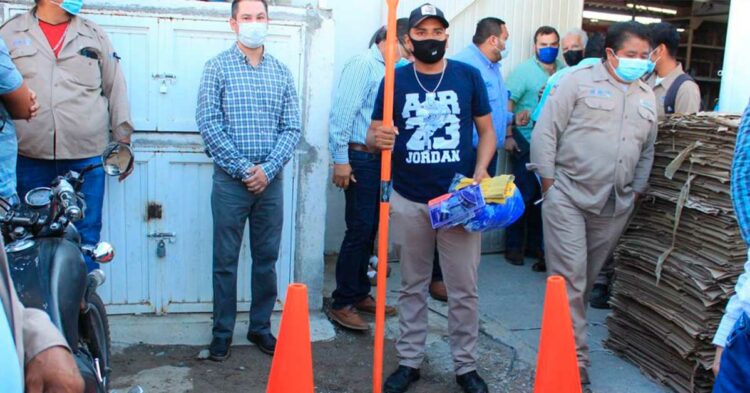 Acompañado por el gerente técnico Fernando Ramírez Leal y el líder del sindicato, Javier Pequeño Lerma, el Gerente General de la COMAPA Victoria se presentó ante los trabajadores para comenzar con la entrega del equipo solicitado por cada departamento para realizar sus actividades.
