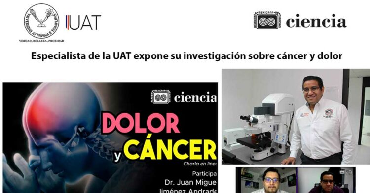 El Dr. Juan Miguel Jiménez Andrade, profesor e investigador de la Universidad Autónoma de Tamaulipas (UAT), impartió la conferencia “Dolor y cáncer”, llevada a cabo en el marco de la serie de sesiones “Charlas con autores” que promueve la Academia Mexicana de Ciencias (AMC).