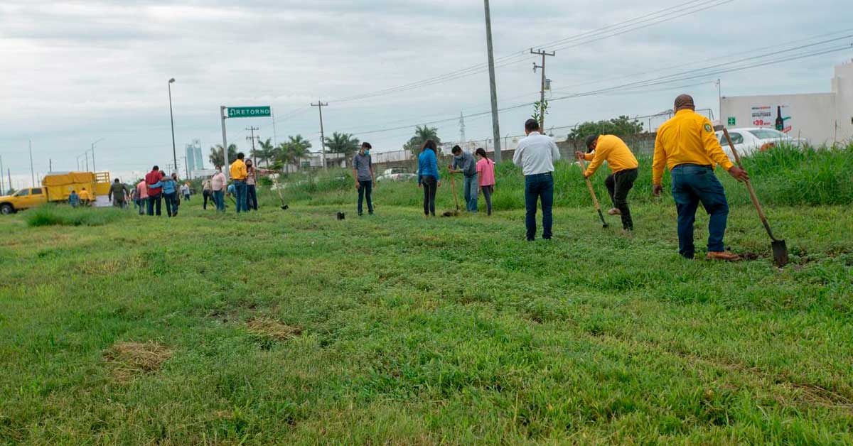 Cien árboles de encinos, tres anacahuitas y dos patas de vaca fueron plantados sobre el camellón central del libramiento Naciones Unidas tramo carretera Matamoros-Monterrey, evento que fue presidido por autoridades estatales, federales y municipales.