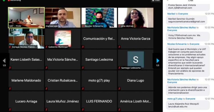 Ciudad Victoria, Tamaulipas (9 de julio de 2021).- El Gobierno Municipal de Victoria presidido por la alcaldesa Pilar Gómez en vinculación con la Universidad Autónoma de Tamaulipas ofreció el taller en línea “La importancia de la diversificación e internacionalización como estrategia empresarial post COVID” con el registro de más de 60 participantes.
