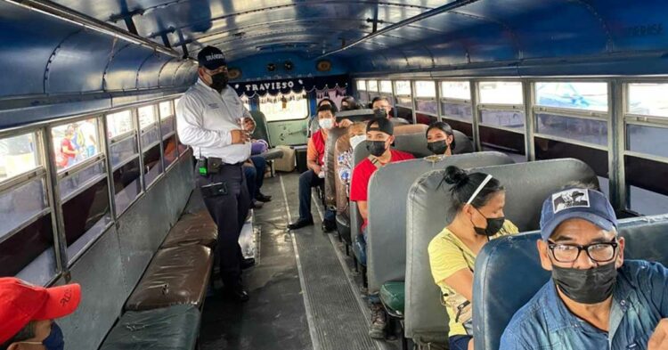 Los agentes de tránsito ofrecen una breve explicación a los pasajeros y los invitan a no bajar la guardia frente a esta pandemia, y los exhortan a seguir usando el cubrebocas, mantener la sana distancia y el lavado frecuente de manos.