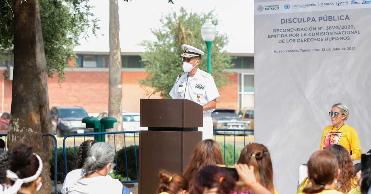 Nuevo Laredo, Tamaulipas.- Por recomendación de la Comisión Nacional de los Derechos Humanos (CNDH), la Secretaría de Marina (SEMAR), encabezó una disculpa pública institucional a favor de familiares de víctimas por eventos ocurridos en 2018.