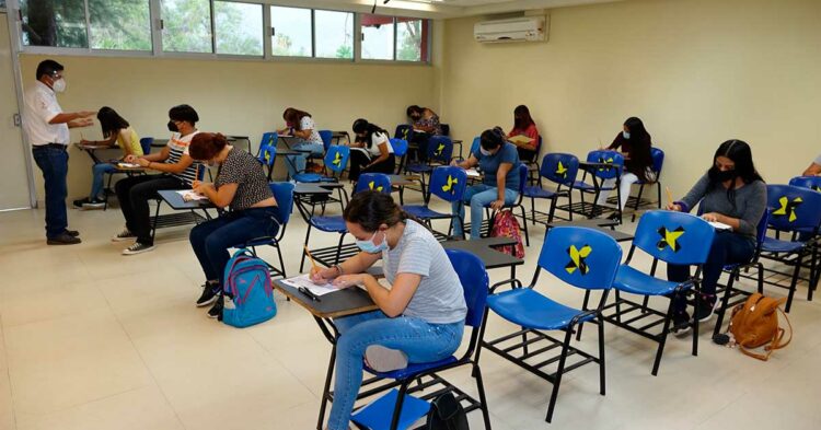 De acuerdo con el calendario administrativo y escolar de la Universidad, el EXANI II del CENEVAL se programó en dos modalidades: desde casa en forma virtual, que se llevó a cabo el 7 de julio, y presencial, los días 13 y 14 del mismo mes con distintos horarios y aforo de alumnos en las aulas designadas por los planteles.