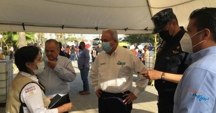 El presidente municipal de Nuevo Laredo, también dispuso de la colaboración de dependencias como Protección Civil y Bomberos, para llevar agua purificada a las personas que se mantenían en las filas en espera de ser vacunados.