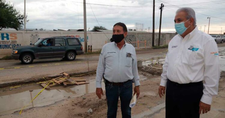 Nuevo Laredo, Tamaulipas.- El presidente municipal Arturo Sanmiguel Cantú acudió a la colonia Hipódromo a supervisar los trabajos de rehabilitación del subcolector sanitario Anáhuac (parte alta), obra con la que se mejorará el sistema de drenaje sanitario en el sector.