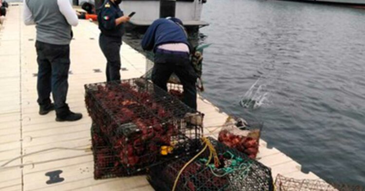 Ciudad de México.- En recorrido acuático de inspección y vigilancia, elementos adscritos a la Segunda Región Naval en coordinación con Oficiales Federales de Pesca de la Comisión Nacional de Acuacultura y Pesca (Conapesca), ayer lograron el aseguramiento y retención precautoria de 46 trampas artesanales para captura ilegal de langosta roja en el área conocida como Rincón de Ballenas, frente a las costas del municipio de Ensenada, Baja California.