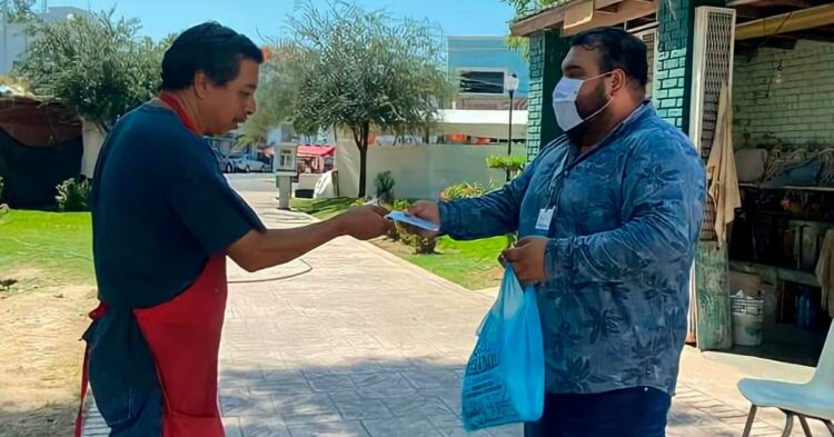 La actividad se realizó el jueves 19 de agosto y se entregaron 100 cubrebocas tanto a la ciudadanía que pasaba por ahí como a las y los comerciantes que laboran en este espacio.