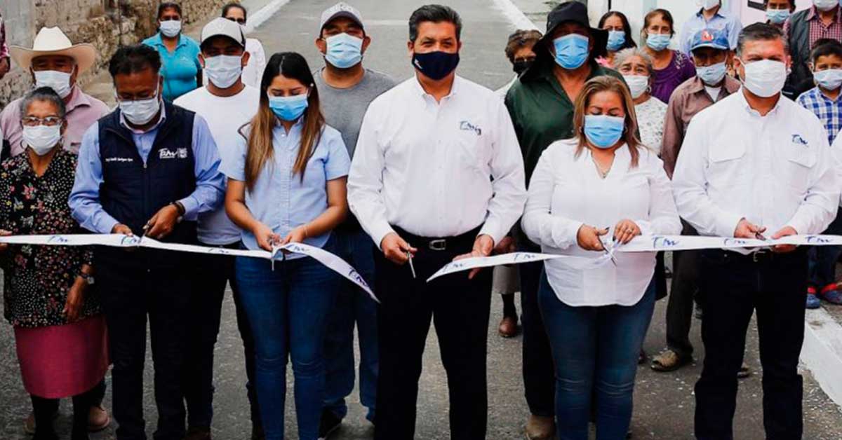 Acompañado por la alcaldesa Marisela Rodríguez González y vecinos de la localidad, García Cabeza de Vaca inauguró las calles Morelos, Juárez y Escobedo, obra pública contemplada en el programa de rehabilitación, pavimentación, alumbrado público, guarniciones y banquetas 2021.