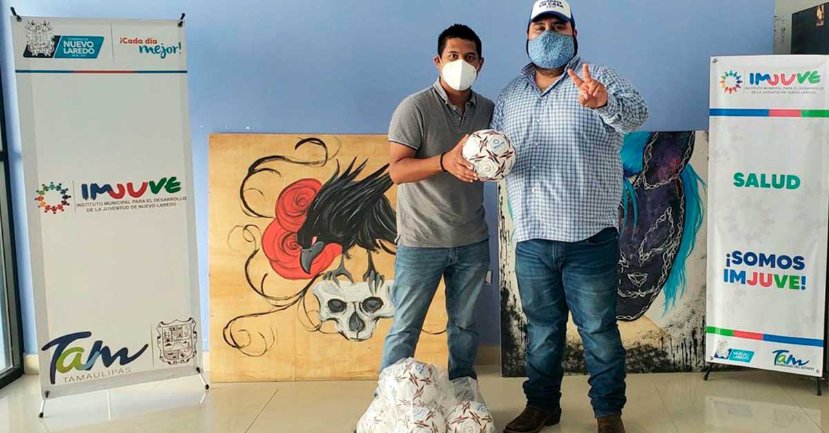 Nuevo Laredo, Tamaulipas.- El Instituto Municipal para el Desarrollo de la Juventud (IMJUVE) donó 10 balones al Club de Fútbol Bengalas de Nuevo Laredo, con el fin de que el equipo siga practicando ese deporte.