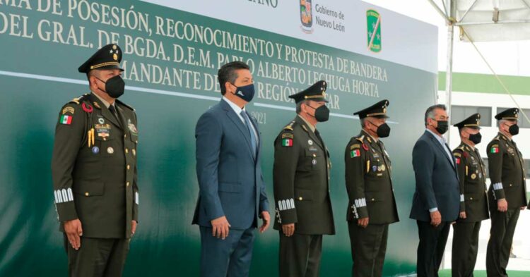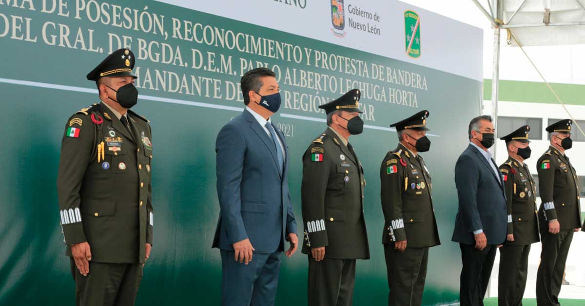 En el marco de la ceremonia solemne de toma de posesión, reconocimiento y protesta de bandera del General de Brigada Diplomado de Estado Mayor, Pablo Alberto Lechuga Orta como Comandante de la IV Región Militar, el mandatario reconoció las tareas en coordinación con fuerzas estatales, mismas que se han cumplido con éxito en la entidad.