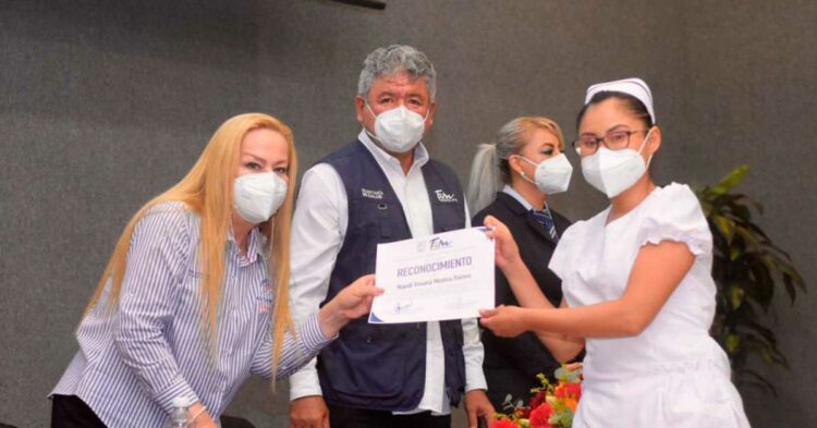 Junto al subsecretario de Calidad y Atención Médica Especializada, Dr. Xicoténcatl González Uresti, la jefa edilicia entregó a un total de 21 trabajadores, entre ellos médicos y enfermeras, la condecoración Miguel Hidalgo y Costilla.