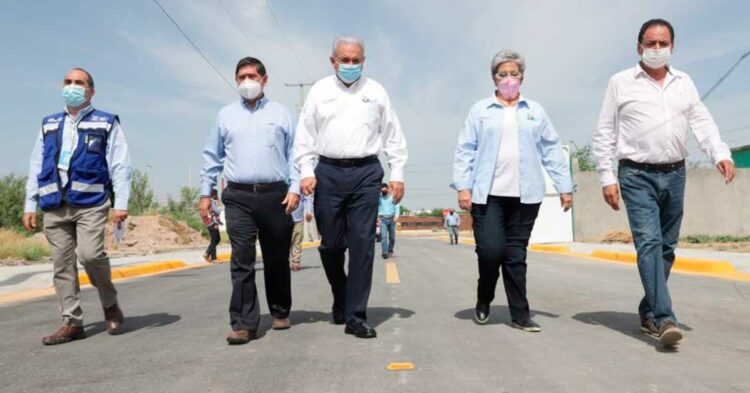 Una vez inaugurada la obra, el presidente Sanmiguel Cantú recorrió la calle acompañado por Dorina Lozano, primera síndica del sector y se dirigió hacia otro tramo de la vialidad que también se pavimenta con asfalto en modalidad completa.