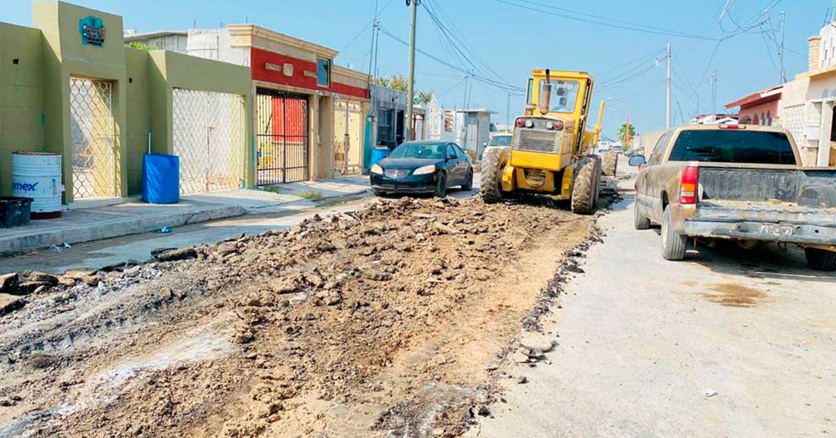 Nuevo Laredo, Tamaulipas.- Como parte del compromiso del presidente municipal Arturo Sanmiguel Cantú con los habitantes de la colonia El Progreso, se puso en marcha la repavimentación de dos vialidades con concreto hidráulico.