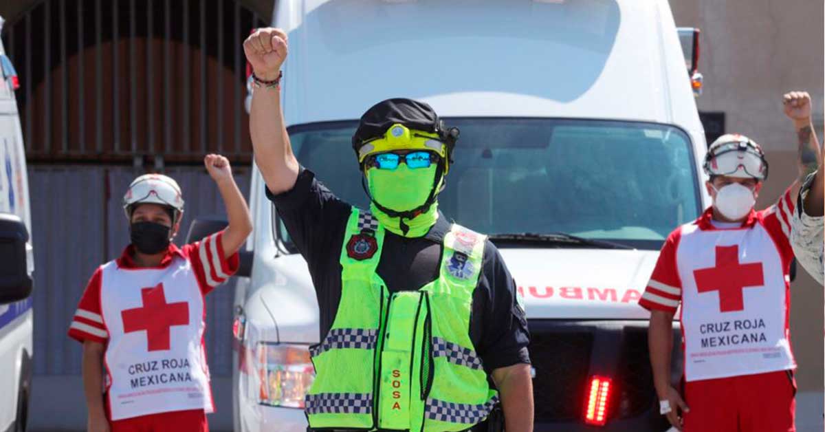 Guardaron un minuto de silencio con el puño derecho levantado al aire y posteriormente hicieron sonar las sirenas de las unidades de emergencia, para reflexionar sobre la trascendencia de la protección civil en México.