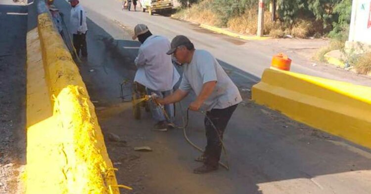 Los trabajos consisten en aplicación de pintura amarilla en cordones de banquetas, camellones y puntas de los accesos, es decir subidas y bajadas de ambos cuerpos de la carretera Nacional, en el tramo del Kilómetro 10 al 13.