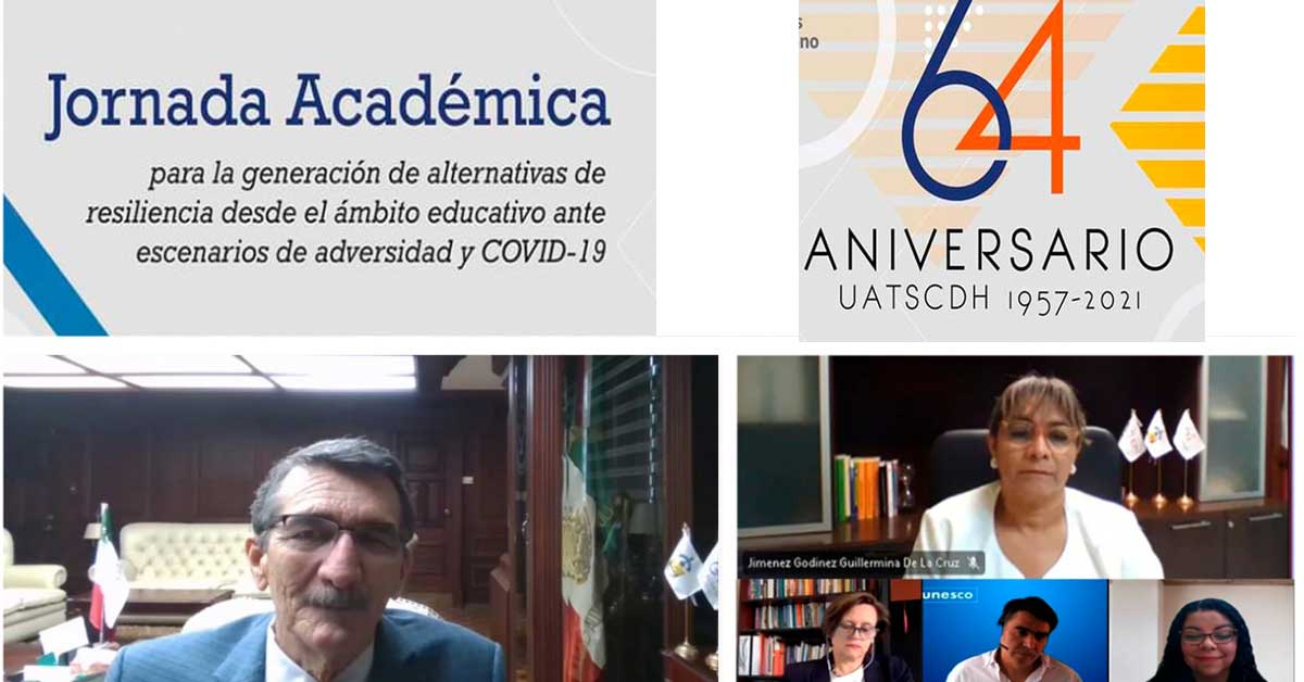 El Rector de la Universidad Autónoma de Tamaulipas (UAT) Ing. José Andrés Suárez Fernández, presidió la inauguración de la Jornada Académica “La Generación de Alternativas de Resiliencia desde el Ámbito Educativo ante Escenarios de Adversidad y Covid-19”.