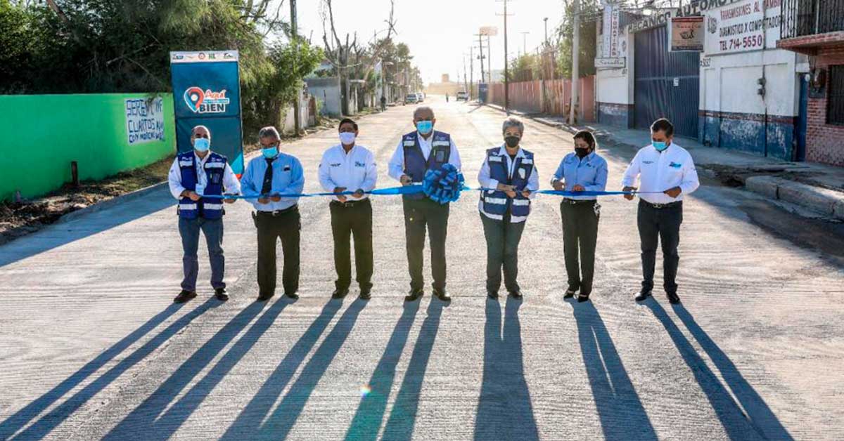 La repavimentación incluye banquetas, tomas domiciliarias, descargas sanitarias, señalización y alumbrado público.