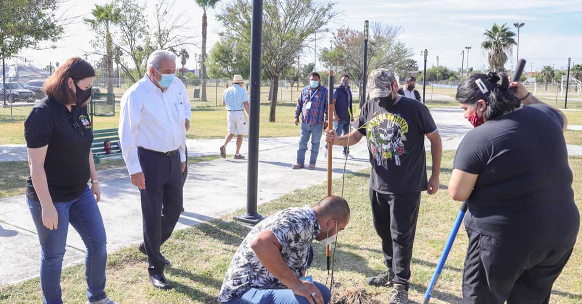 Nuevo Laredo, Tamaulipas.- El gobierno municipal, en coordinación con el ‘Equipo Verde del Consulado Americano’, plantaron 10 árboles en el Parque Polvo Enamorado, en el marco del Día Mundial de la Limpieza.