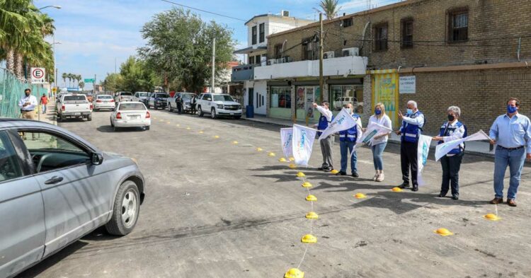 Nuevo Laredo, Tamaulipas.- El presidente municipal, Arturo Sanmiguel Cantú, dio el banderazo a la reapertura de la circulación vial sobre la calle América, en su intersección con la González, con lo que se concluye al 100 por ciento la rehabilitación del colector pluvial en este sector.
