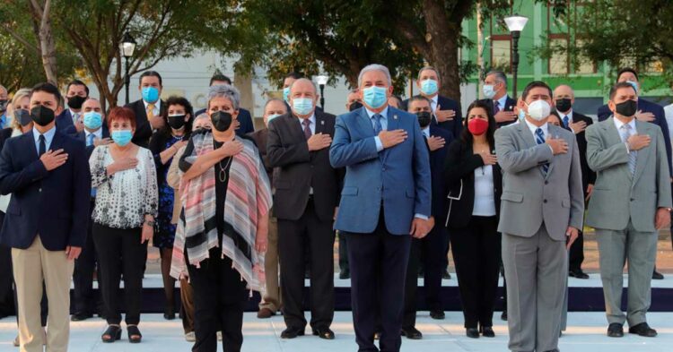 Nuevo Laredo, Tamaulipas.- El presidente municipal Arturo Sanmiguel Cantú, encabezó este lunes 27 de septiembre, la última ceremonia de Honores a la Bandera Nacional y a los Escudos de Armas de Tamaulipas y Nuevo Laredo de la administración municipal 2018-2021.