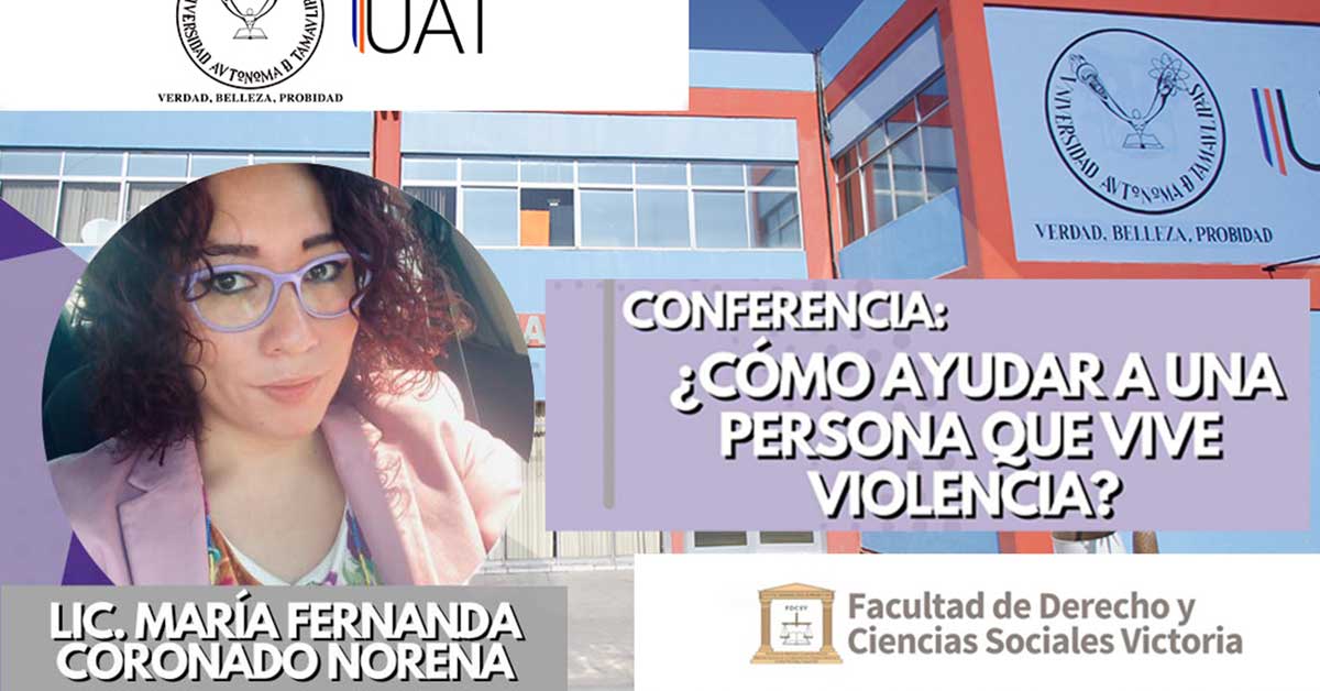 La Facultad de Derecho y Ciencias Sociales Victoria (FDCSV) de la Universidad Autónoma de Tamaulipas (UAT), realizó la conferencia virtual ¿Cómo ayudar a una persona que vive violencia?, en la cual se destacó la importancia de detectar a tiempo este tipo de casos, para brindar la atención necesaria.