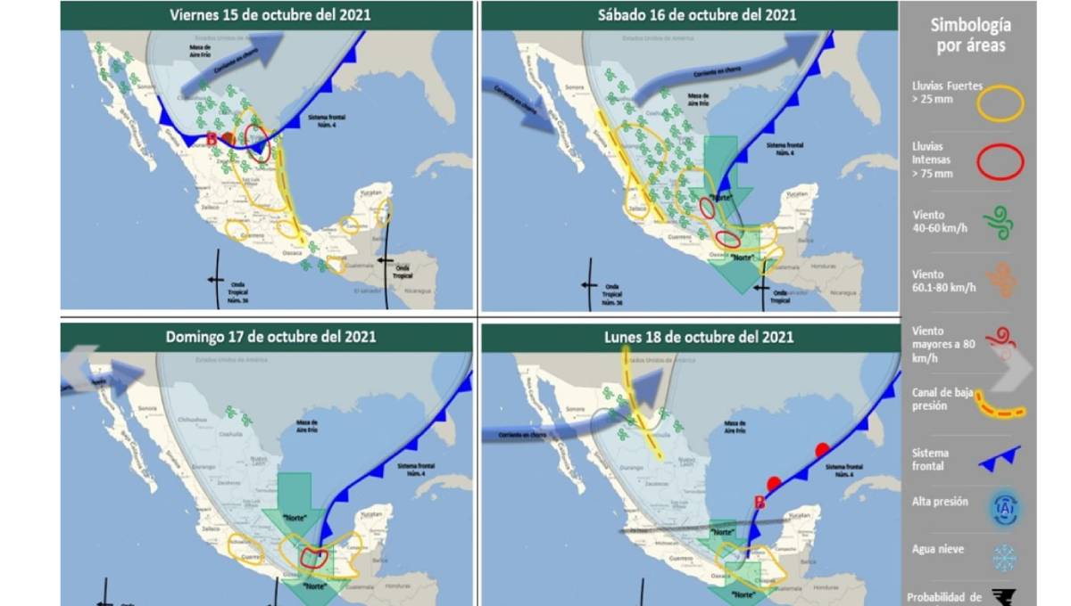 La probabilidad de lluvia está considerada en 25% a 50% para el viernes 15, de 10% a 25% para el sábado 16, y en 10% para el domingo 17 de octubre.