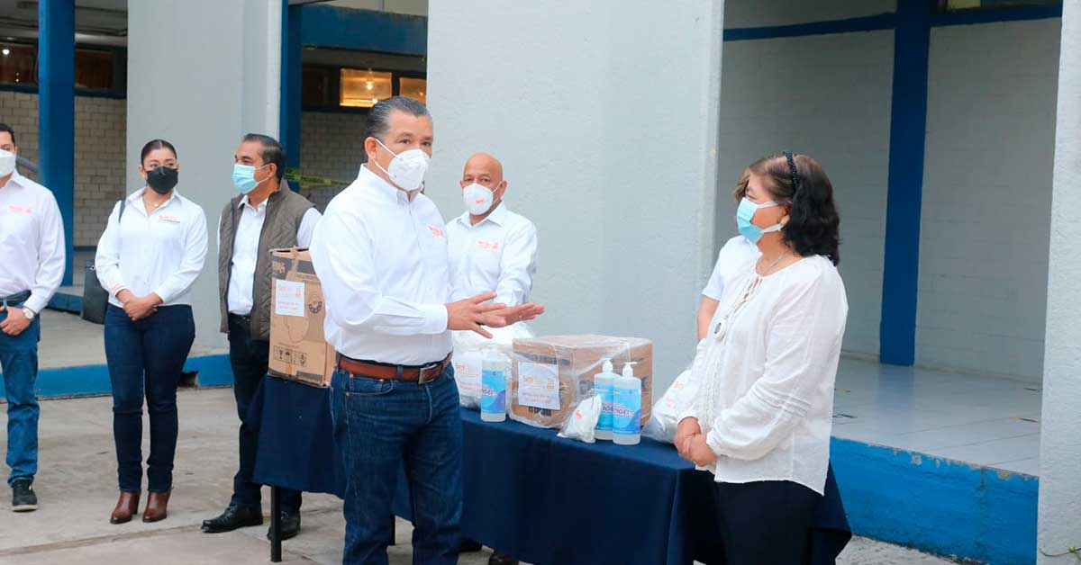 Para dar continuidad al programa de entrega de insumos y reforzar las medidas sanitarias de prevención contra el COVID-19, el Secretario General de la Sección 30 del SNTE, José Rigoberto Guevara Vázquez, llevó diversos artículos como gel antibacterial y cubrebocas a diversas instituciones educativas.