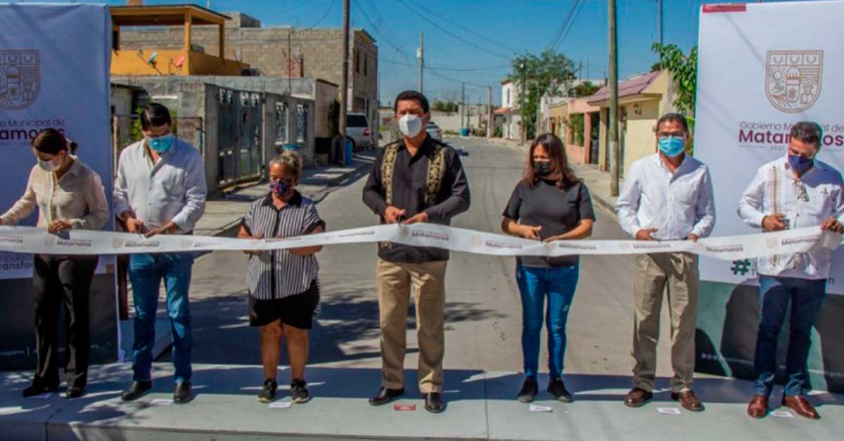 Matamoros, Tamaulipas.- En gira de trabajo por colonias populares, el Presidente Municipal Reelecto, Mario Alberto López Hernández entregó nuevas obras de pavimentación en colonias que vienen enfrentando rezagos de infraestructura por más de 25 años, acciones realizadas con una inversión que supera los 4.3 millones de pesos.