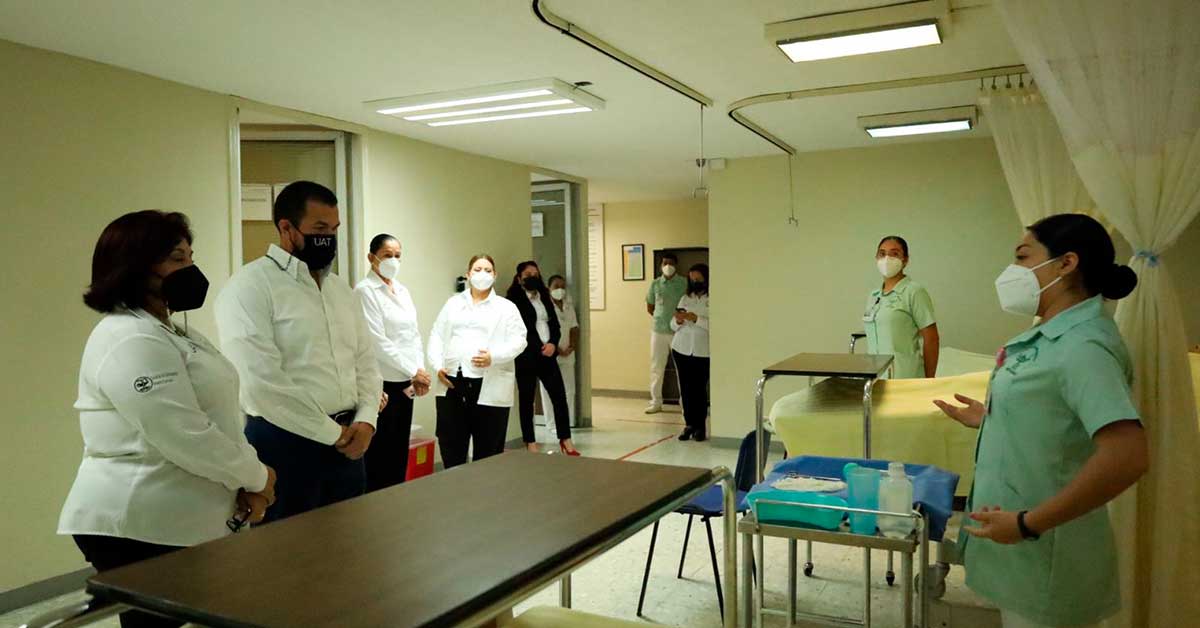 Como parte de su visita a la Facultad de Enfermería de Nuevo Laredo, el contador público Guillermo Mendoza Cavazos hizo un recorrido de supervisión por las instalaciones para la práctica y enseñanza clínica.