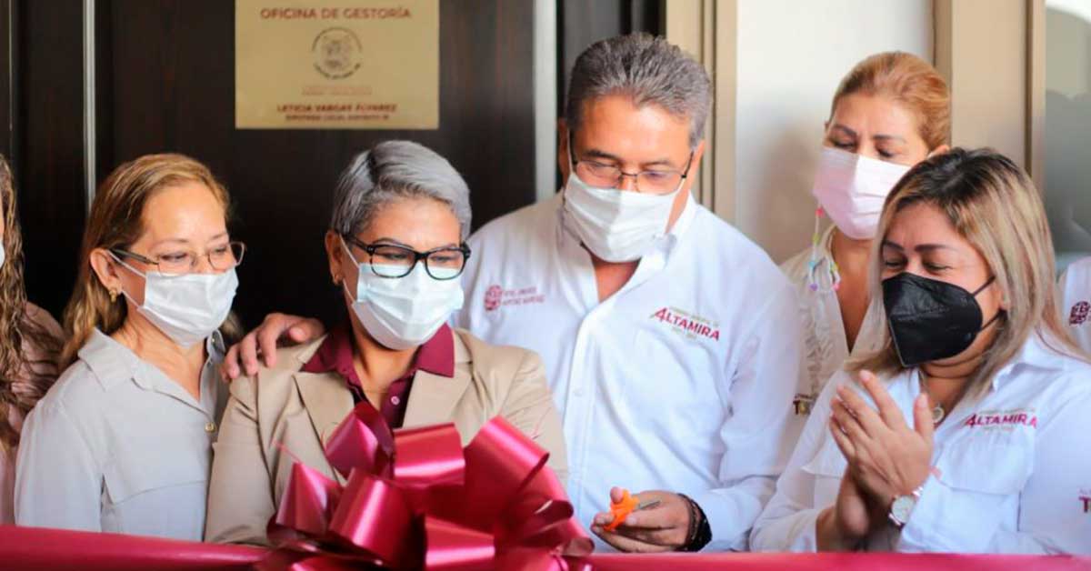 Altamira, Tamaulipas.- En el corte del listón inaugural de la casa de gestión de la diputada local por el distrito XIX, Leticia Vargas, ubicada en las instalaciones de la presidencia municipal de Altamira, el alcalde Mtro. Armando Martínez Manríquez refirió que trabajará muy de la mano con las representantes del Congreso del Estado en Altamira, particularmente con la diputada Leticia Vargas, pues es la presidenta de la comisión de deportes en la cámara de diputados local.