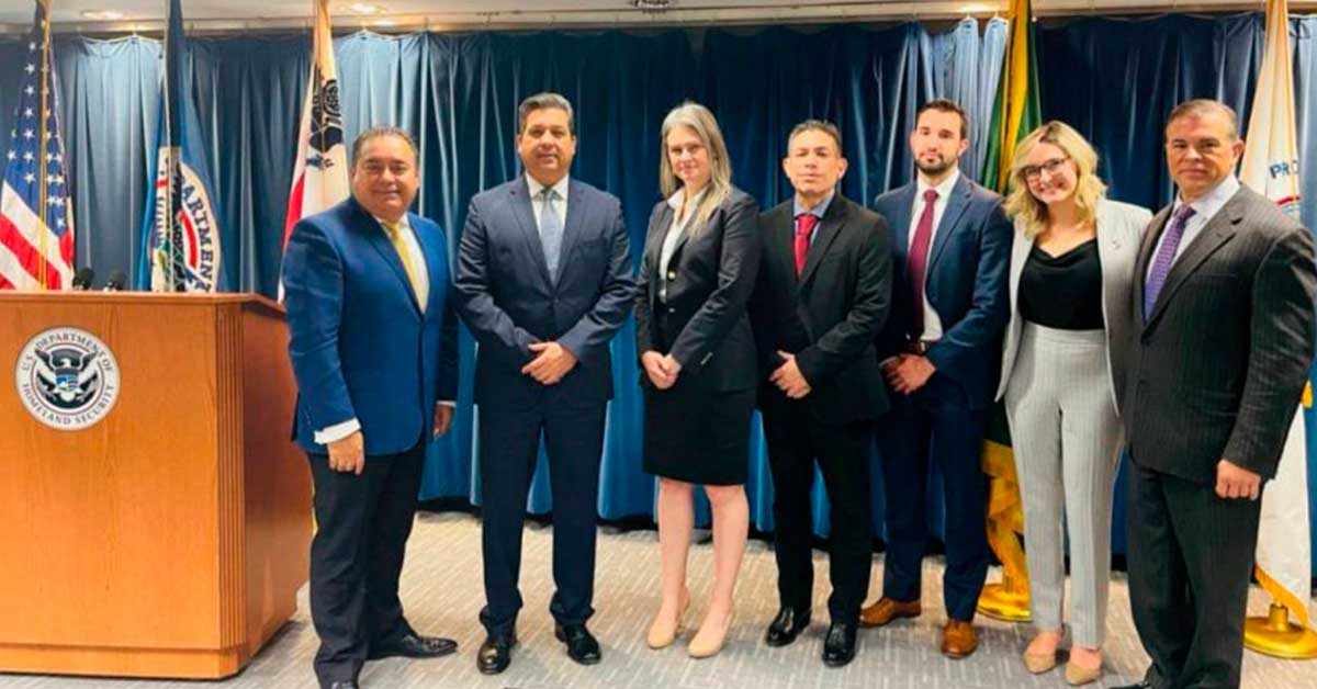 Washington D. C.- En su último día de gira de trabajo en la capital estadounidense, el Gobernador Francisco García Cabeza de Vaca sostuvo una reunión con oficiales del Departamento de Seguridad Nacional (Homeland Security) y de Aduanas y Protección Fronteriza (Customs And Border Protection), en la que intercambiaron ideas para continuar fortaleciendo la seguridad fronteriza y el comercio exterior entre Tamaulipas y Estados Unidos.