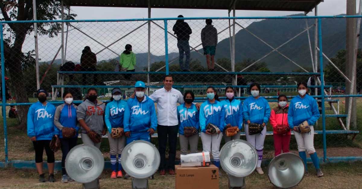 Ciudad Victoria, Tamaulipas.- Por solicitud de padres de familia y entrenadores, el Director General del Instituto del Deporte de Tamaulipas, Orlando Martínez hizo entrega de lámparas que ayudará a iluminar algunas áreas de entrenamiento de softbol y béisbol infantil de la Villa Olímpica de Tamatán en Ciudad Victoria.