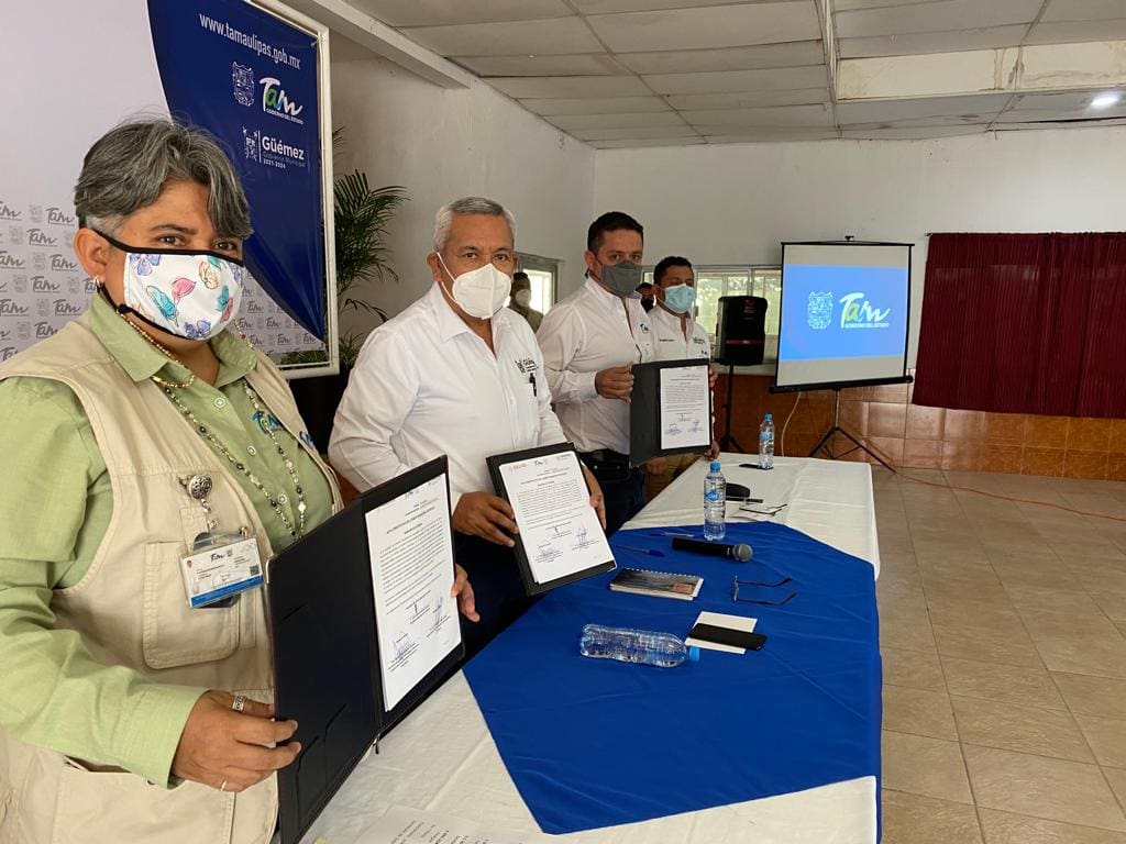 Acompañada por los alcaldes de Jaumave, José Luis Gallardo Flores; de Abasolo, Rubén Curiel Curiel; de Jiménez, Luis Enrique Salazar Sánchez y de Güémez, José Lorenzo Morales Amaro, la titular de la SST tomó la protesta y signó el acta constitutiva de los comités de salud en cada uno de los municipios.