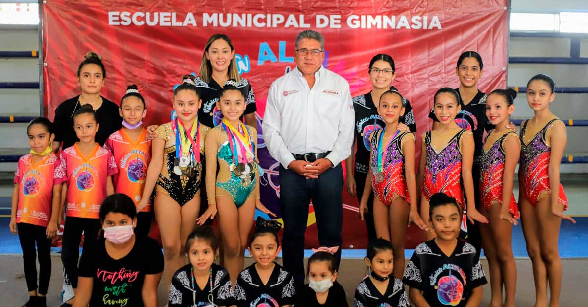 Altamira, Tamaulipas.- A este evento acudió la primera autoridad de Altamira, el alcalde Mtro. Armando Martínez Manríquez quien se mostró contento de constatar los resultados que han tenido quienes se instruyen en esta escuela atlética, pues las estudiantes han conseguido traer a casa importantes lugares en las competencias propias del deporte rítmico a nivel estatal y nacional, e inclusive tienen un viaje en puerta a la ciudad de Mérida, Yucatán representando a Altamira en una competencia nacional.