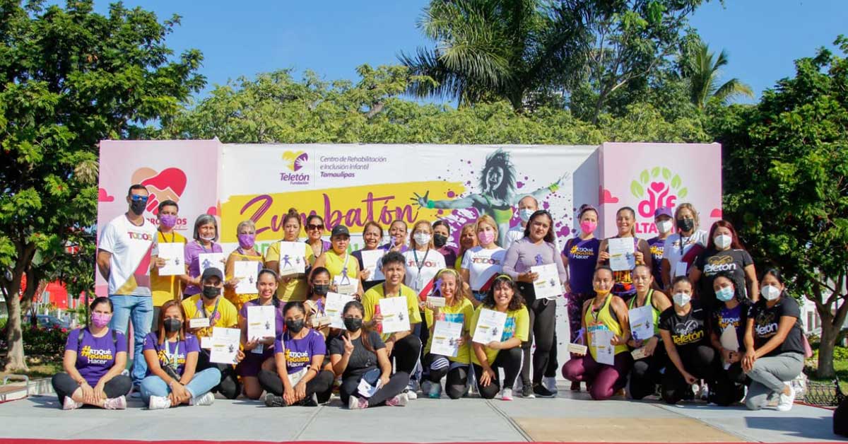 El evento se desarrolló en la plaza principal de esta ciudad, en donde estuvo presente también el Director General del Centro de Rehabilitación e Integración Teletón Tamaulipas, emprendedores e instructores de zumba, quienes se unieron a la noble causa de recolectar fondos para que el CRIT siga brindando servicio médico interdisciplinario, terapia física, ocupacional, lenguaje, estimulación múltiple temprana, neuroterapia, psicología e integración social, con un modelo para toda la familia.