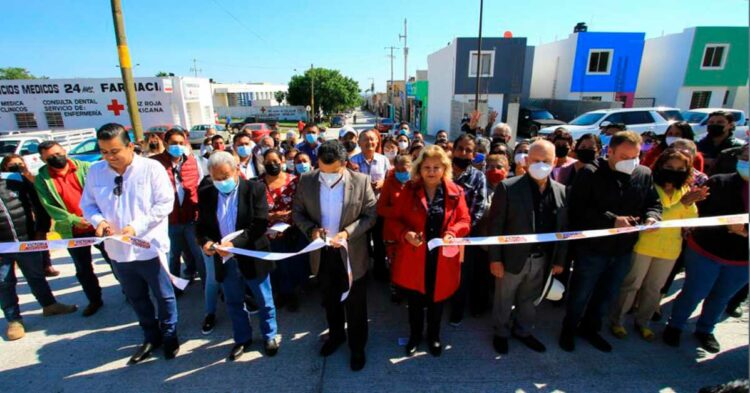 Ciudad Victoria, Tamaulipas.- Continuando con el mejoramiento de vialidades en la ciudad, el presidente municipal de Victoria, Eduardo Gattás Báez, inauguró la pavimentación con concreto hidráulico de la calle Lomas de Calamaco del Fraccionamiento Calamaco.