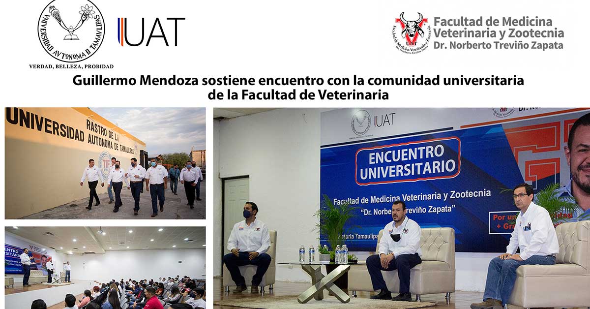 Ciudad Victoria, Tamaulipas.- Durante su visita a la Facultad de Medicina Veterinaria y Zootecnia “Dr. Norberto Treviño Zapata”, como Rector Electo para el período 2022-2025, el C.P. Guillermo Mendoza Cavazos reconoció el compromiso y la aportación de este plantel para contribuir a hacer más grande y más fuerte a la Universidad Autónoma de Tamaulipas (UAT).