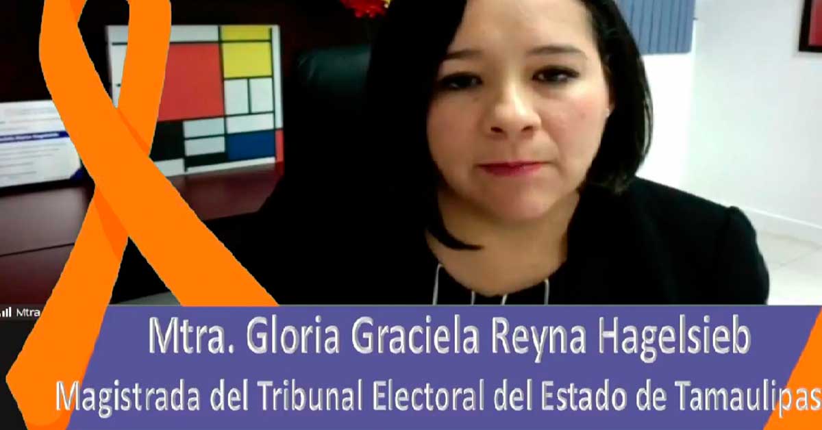 Ciudad Victoria, Tamaulipas.- En el marco de la campaña #16DíasDeActivismo, promovida por la ONU Mujeres enfocada a la eliminación de todo tipo de violencia contra las mujeres, esta tarde la Magistrada Mtra. Gloria Graciela Reyna Hagelsieb, del Tribunal Electoral del Estado de Tamaulipas, participó como ponente en la conferencia “Violencia Política contra las Mujeres en Razón de Género”, organizada por el Instituto Electoral del Estado de Tamaulipas, bajo la representación de la Consejera Electoral Mtra. Mayra Gisela Rodríguez Lugo.