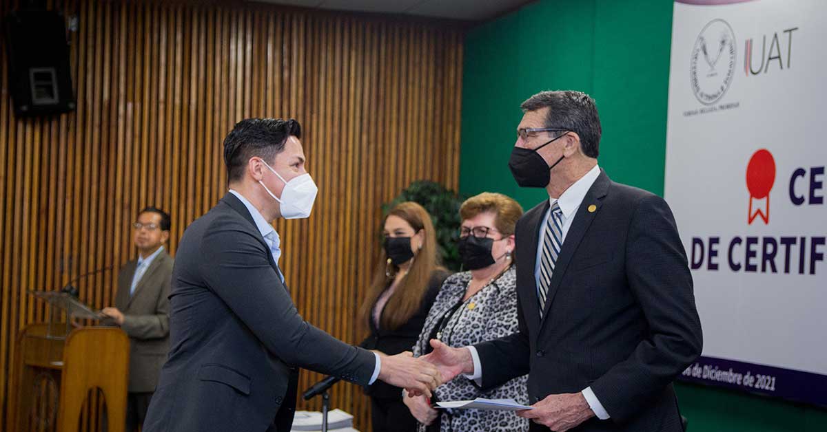 En el evento presencial realizado en el Centro de Excelencia, y transmitido por las plataformas Teams y Facebook a las distintas sedes universitarias, el Ing. Suárez Fernández hizo la entrega de 110 certificaciones en diez estándares del Consejo Nacional de Normalización y Certificación de Competencias Laborales (Red CONOCER), cuyos cursos se impartieron a través del Centro Institucional de Capacitación Docente (CICAD) de esta casa de estudios.